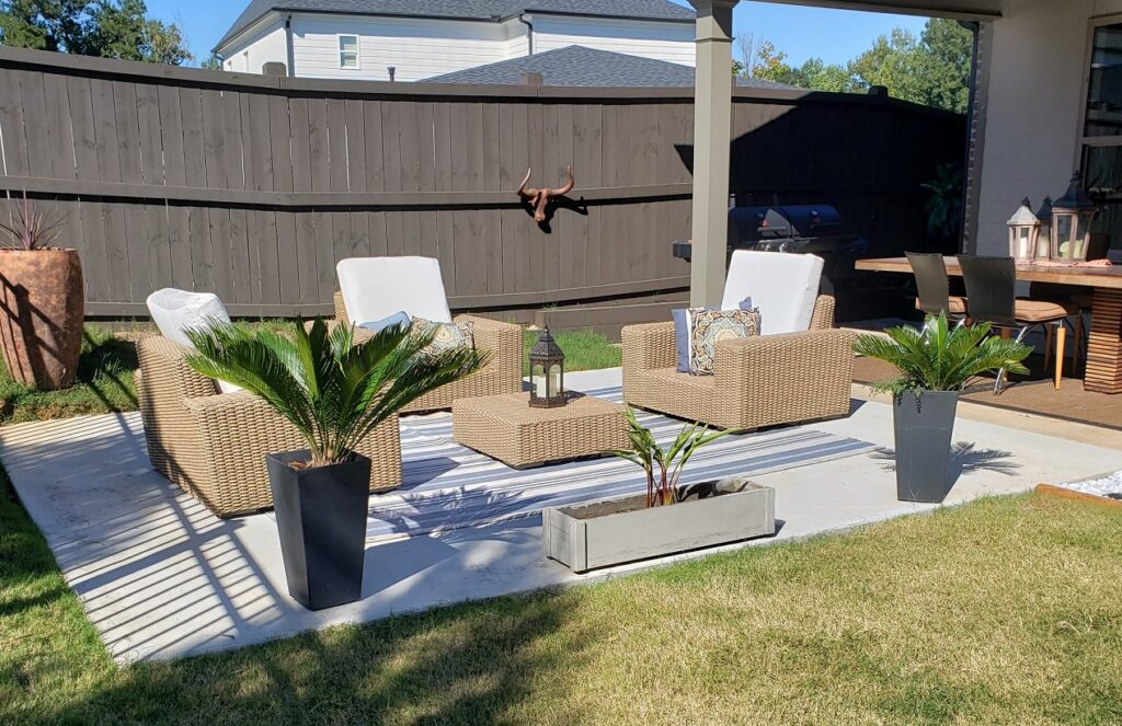Durable poured or stamped concrete patios and driveways offer affordability, customization (patterns, colors, textures), and strength against red clay movement. Ideal for larger areas or modern looks—low-maintenance and crack-resistant with proper reinforcement. Concrete is the most affordable patio option available.