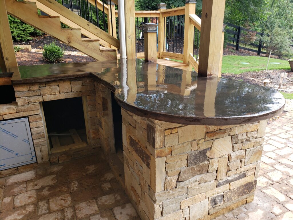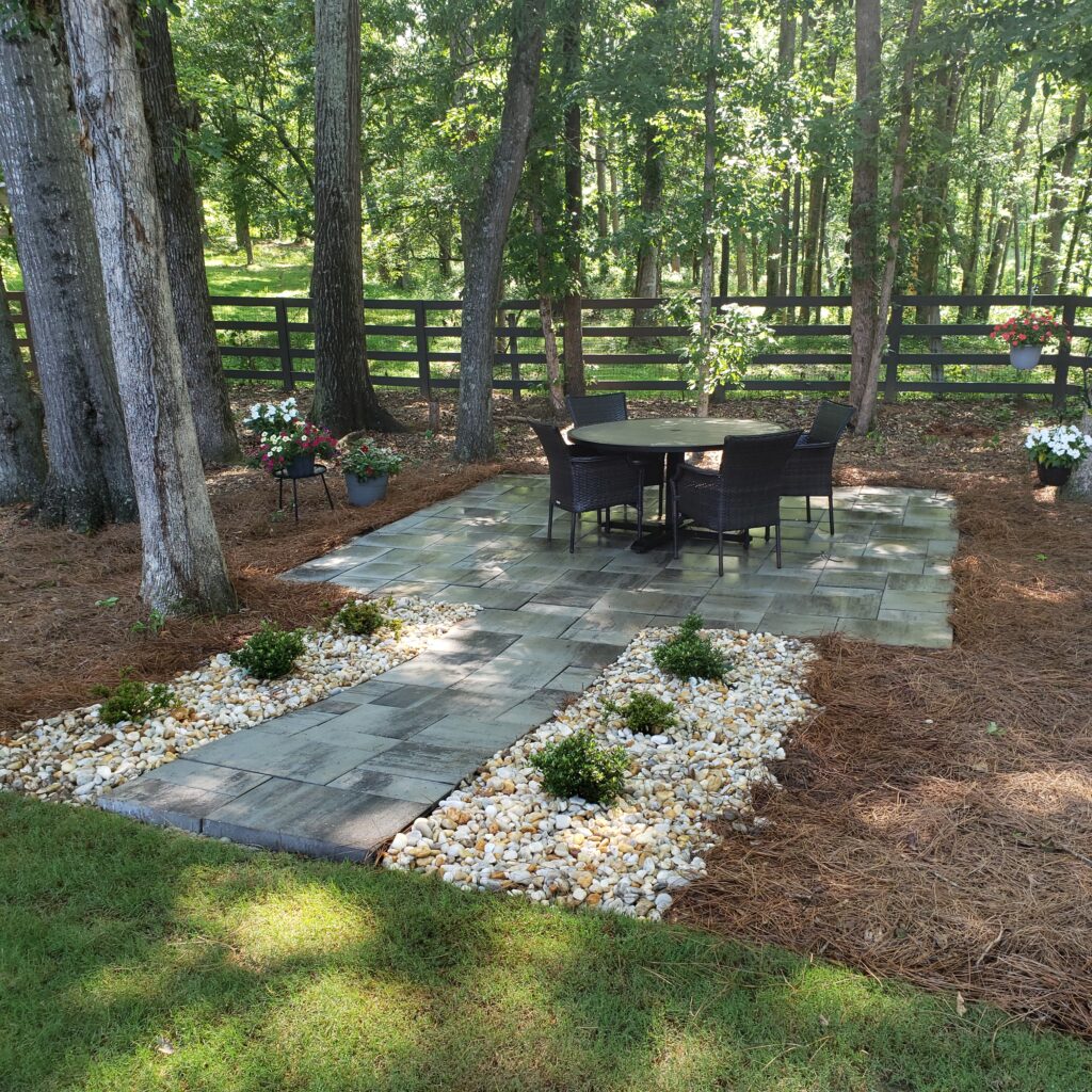 Our designs prioritize low-maintenance beauty, safety, and value: extending usability through all seasons, boosting curb appeal/property worth, and creating gathering spots for family, friends, and relaxation. Whether you’re adding a flagstone-style patio, a full outdoor kitchen for year-round cooking, or integrated lighting for ambiance and security, we build to last in Forsyth County conditions.